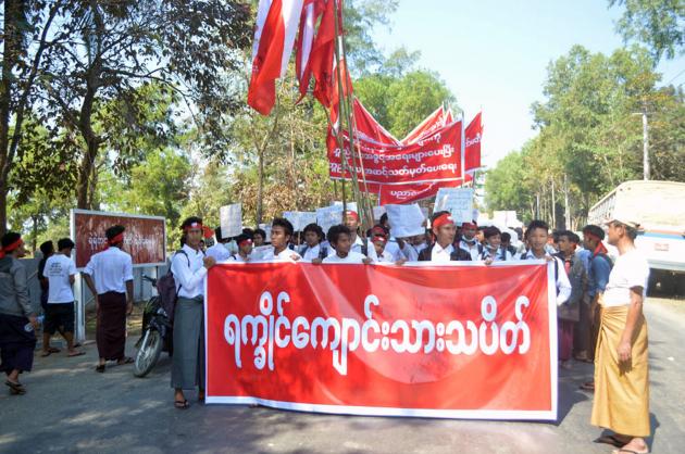 “We believe the national education law enacted by the government will lead to centralisation of the education system. Moreover, the law also curbs the freedom of students. We hope to educate the public about the law,” said Myo Min Tun, vice chairman of the Rakhine State Student Union.