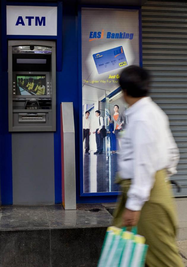 He uses the card for shopping and money withdrawals. More supermarkets and shops are accepting plastic and ATMs usually allow a maximum withdrawal of Ks300,000 (US$250).