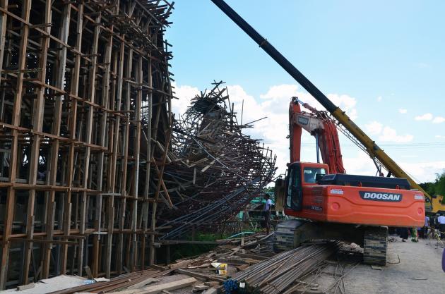 According to a Red Cross member who was at the rescue said that the scaffolding collapsed when workers were pouring a concrete slab.