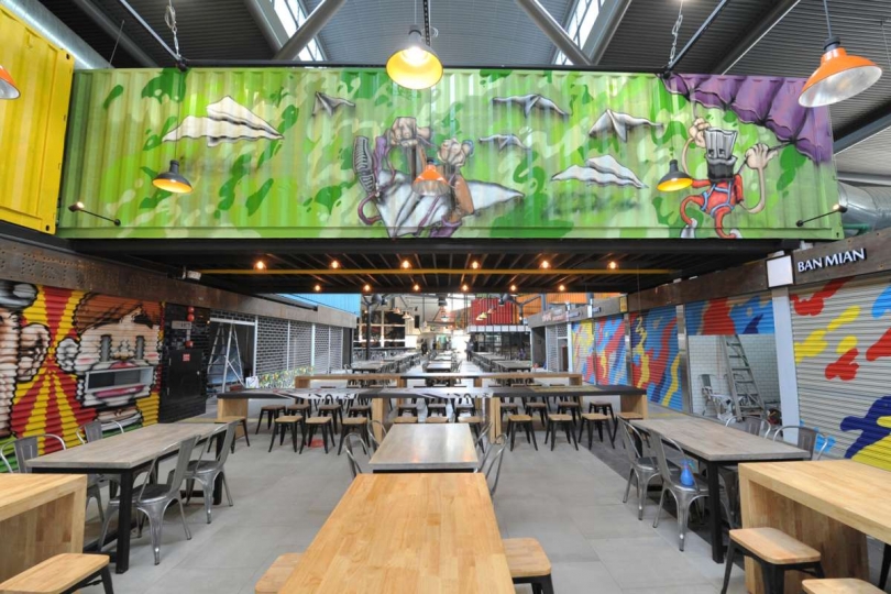 JTC tore down the canteen that used to occupy the site and built a larger space for Timbre+. Large containers are part of the industrial- chic aesthetic, complete with vibrant graffiti designs.