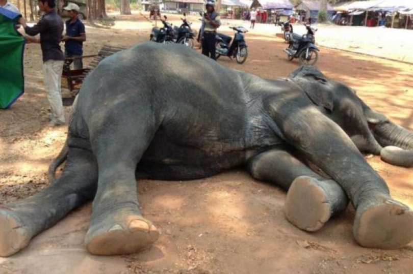 Photos posted on Facebook by user Yem Senok, which showed the elephant lying on its side by the road, were shared over 8,000 times and sparked an outcry on social media.