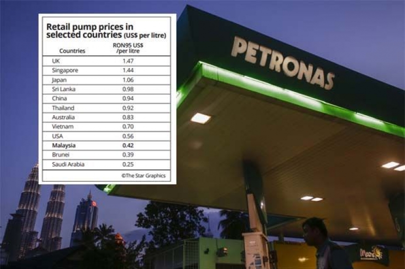 Using the retail RON95 pump price, I found our selling price is higher than Saudi Arabia and Brunei, selling at US$0.25 per litre and US$0.39 per litre respectively.