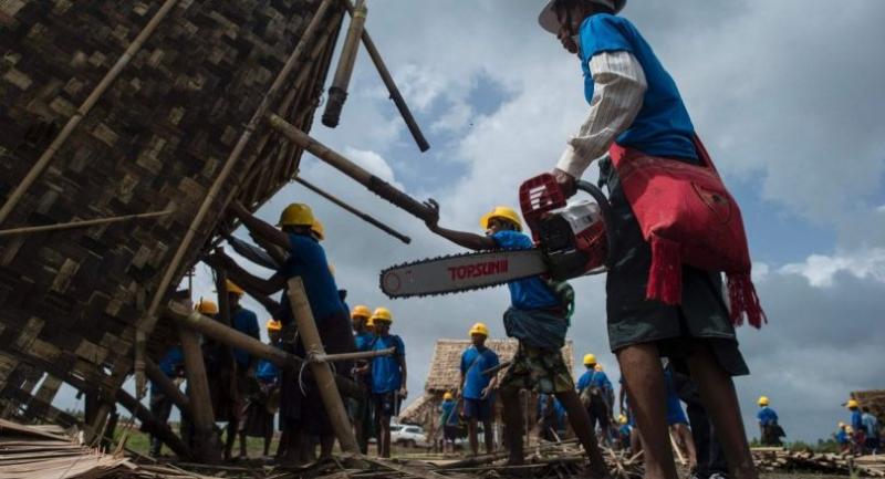 Armed police escorted hundreds of local authority workers wielding bamฌboo sticks, rakes and saws as they descended on the shantytown in Hlegu township – the first major forced evicฌtion under the civilian government of Aung San Suu Kyi.