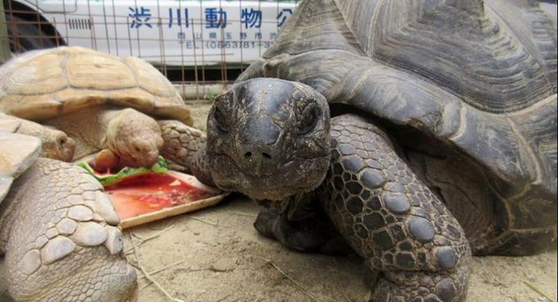 This handout taken and released on August 16, 2017 by the Shibukawa Animal Park shows Abuh the female giant tortoise after she was found near the animal park in Okayama prefecture.