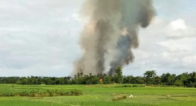 On Wednesday villagers in Rakhine continued to flee their homes.