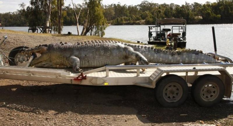 A handout photo taken on September 21, 2017 and received on September 22 from the Queensland Police Service shows a 5.2-metre male crocodile that was found in a creek along the Fitzroy River near Rockhampton with a single gunshot wound to the head. // AFP PHOTO