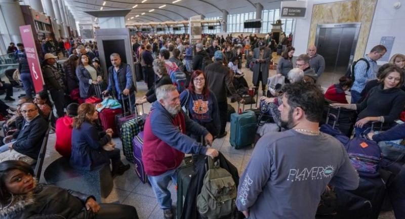 Flightview.com, which tracks air travel data, listed hundreds of flights as being delayed or canceled, and a bar graph on the site showed more than 80 percent of departing flights at the airport and 80 percent of arriving flights as being late.