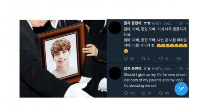 According to Indonesian media reports Thursday, the fan was found unconscious from an overdose and hospitalized in an apparent suicide attempt. On Monday she left suicidal posts on her Twitter account, the day Jonghyun passed away.