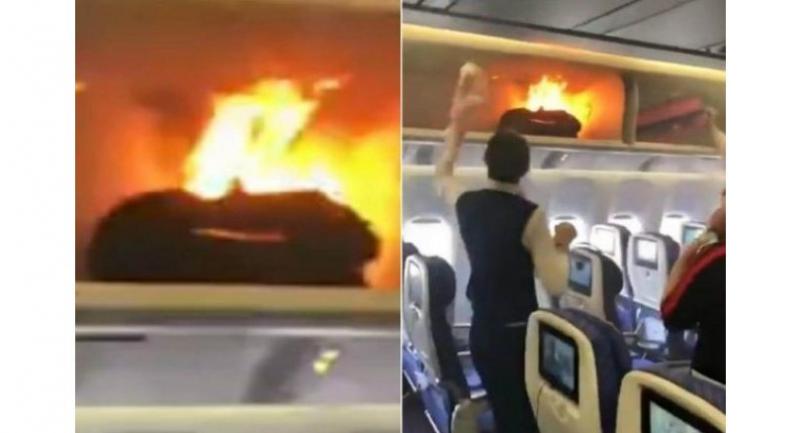 China Southern Airlines said on Chinese microblogging site Weibo that a passenger's cabin bag had emitted smoke and fire during the boarding process.