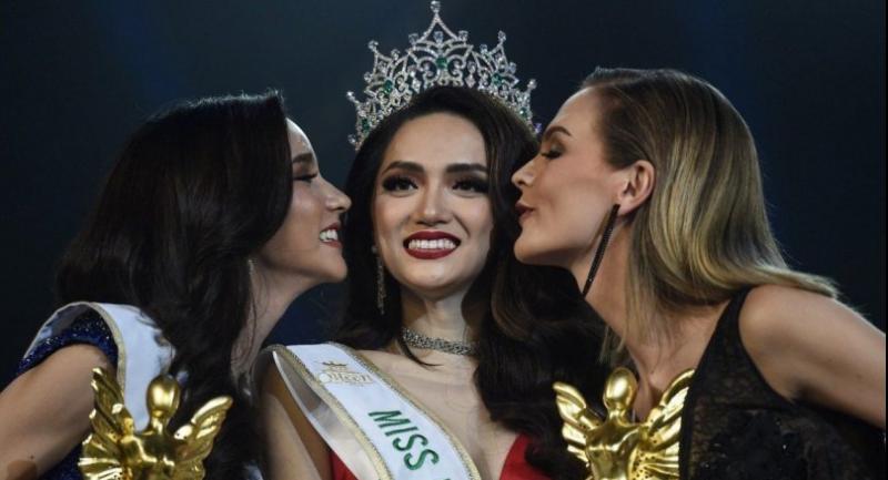 The red-dressed winner fended off 26 competitors, from countries spanning Mongolia to Mexico, to clinch the coveted crown in the seaside town of Pattaya, where the popular contest has been running since 2004.