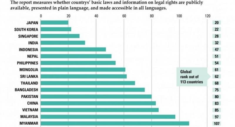 The report measures whether country’s basic laws and information on legal rights are publicly available, presented in simple language and if there is civic participation and complaint mechanisms. It also measures if the processes by which the laws are enacted and administered are accessible, fair, and efficient.