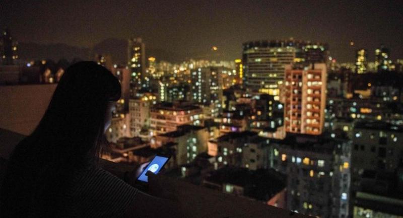 In this picture taken on April 24, 2018, 24-year-old Nicole, a pseudonym she chose to protect her identity, uses the popular messaging app WeChat on her phone in Hong Kong. Nicole has a full-time office job, but still does after-hours sex work to pay off her college debts as her family cannot afford to help. For Hong Kong's "part-time girlfriends" social media provides an easy way to connect with clients looking for sex, but campaigners warn that online convenience is tempting girls as young as 13 to put themselves at risk. // AFP PHOTO