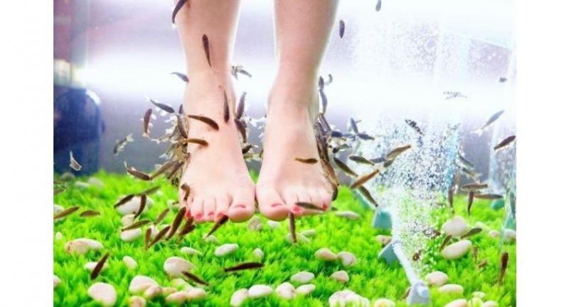 Fish pedicures, a popular spa treatment in Asia, involve small fish that nibble at your feet in a large container of warm or room temperature water. The fish, a type of toothless carp, nip away at dead skin and are supposed to be able to treat conditions like psoriasis and smoothen the skin.