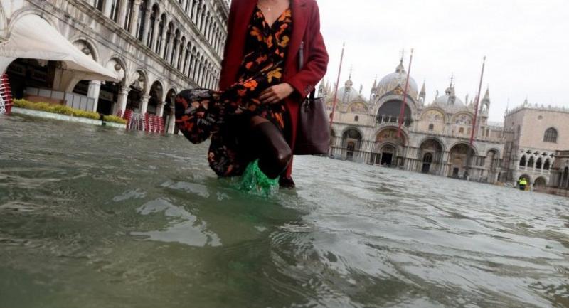 In Venice, rain-soaked tourists were barred from St. Mark's Square where local authorities said the "acqua alta" (high water) peaked at 156 centimetres (61 inches) by early afternoon.
