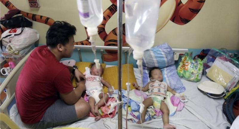 Filipino children, who are suffering from measles, share beds inside an over crowded room at a government hospital in Manila, Philippines, 07 February 2019. // EPA-EFE PHOTO