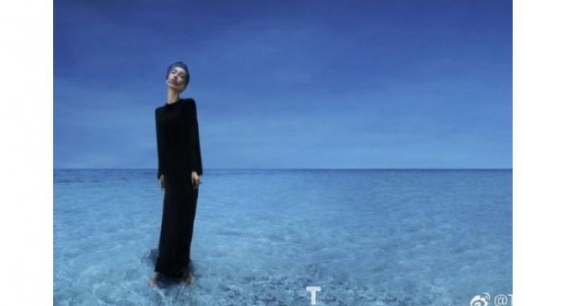The magazine has released nine photos, taken on a beach in Phuket, Thailand, by fashion photographer Fan Xin, on microblogging platform Weibo. One of the photos is a nod to a photo of Chinese actress Gong Li posing on the beach.