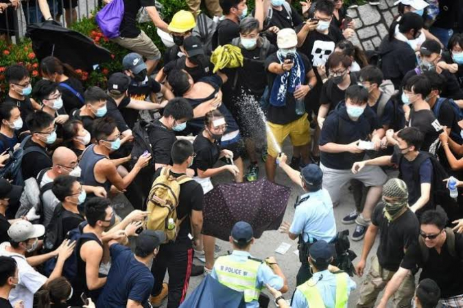 The attacks by the protesters came after a largely peaceful march against a controversial extradition Bill ended on Sunday afternoon.
