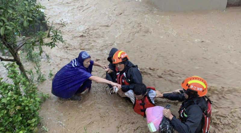More than 30,000 firefighters in Zhejiang, Shanghai and Jiangsu have assisted in the rescue and relocation of 6,257 people in distress, the ministry said.