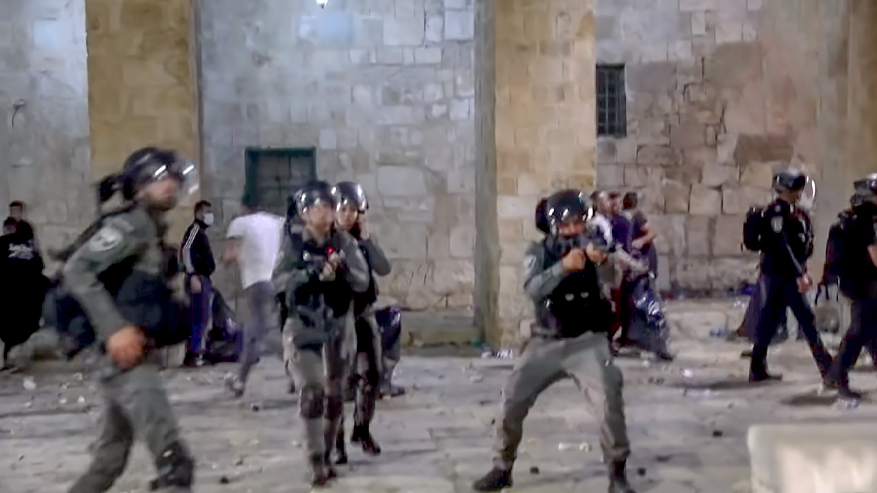 Video from the plaza surrounding the al-Aqsa Mosque showed officers in riot gear deploying stun grenades against a crowd of Palestinians throwing bottles and rocks. The fighting erupted after evening prayers on the final Friday of Ramadan, the Muslim holy month. More than 70,000 worshipers had gathered during the day at the mosque, one of Islam's holiest sites and the location of frequent clashes between Palestinians and Israeli police who control access to compound.