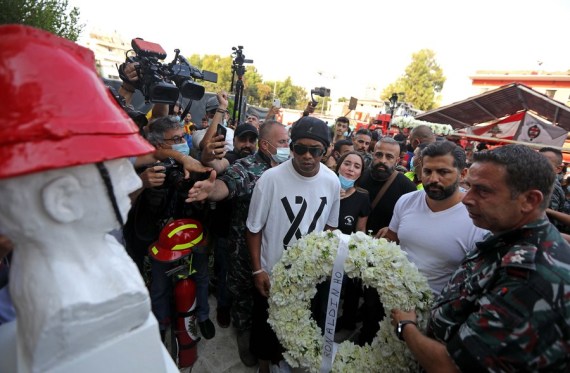 Ronaldinho and a number of players from international football clubs, including Barcelona, arrived on Wednesday in Lebanon, as part of a tour in solidarity with the victims of Beirut port's explosions, marking the first anniversary of the tragic incident.