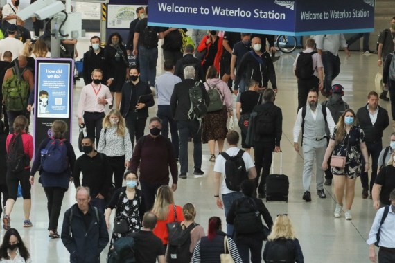 Passengers walk at St. Pancras International Station in London, Britain, July 29, 2021.