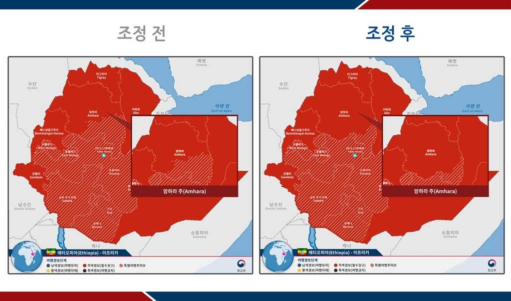 The ministry said that it would continue to review whether there is a need to readjust the travel alert level as it carefully watches the security conditions in northern Ethiopia. (Yonhap)