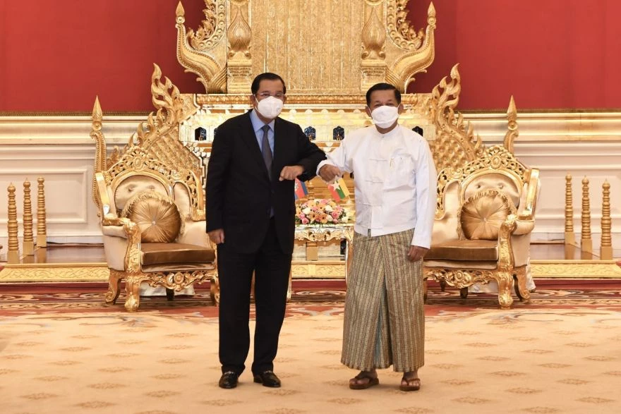 During the meeting with Mr Hun Sen, Gen Min Aung Hlaing stressed that the implementation of Asean’s five-point consensus should be complementary to the junta’s own political road map.