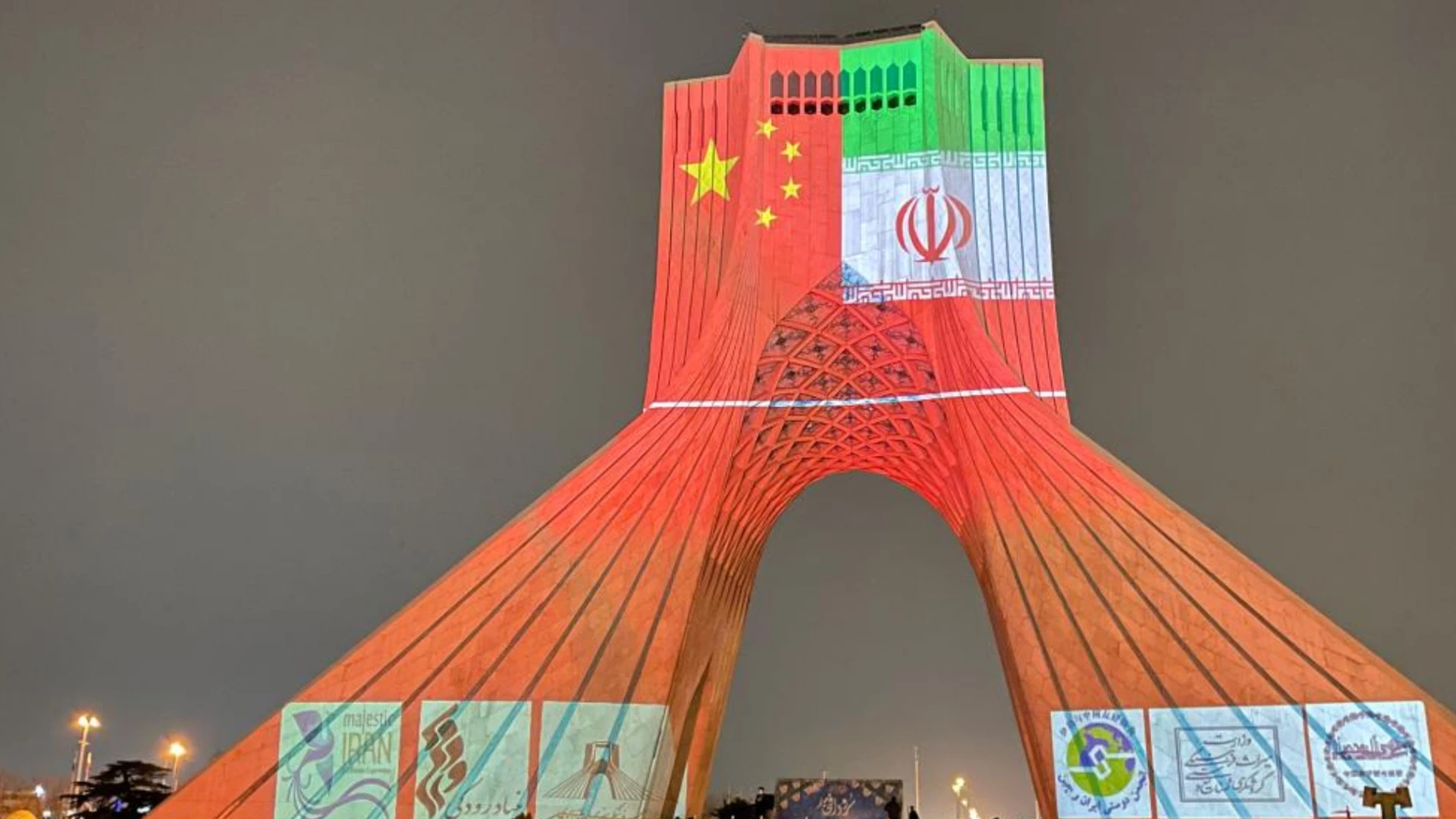 TEHRAN, Jan. 31 -- With the Chinese and Iranian national anthems playing in the background, the national flags of the two countries were flying on the top of the tower, while the main body of the landmark was illuminated in red.
