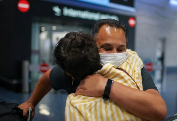The airport's arrival terminal was full of tears and hugs. Families who have not seen each other for over two years reunited on Monday.