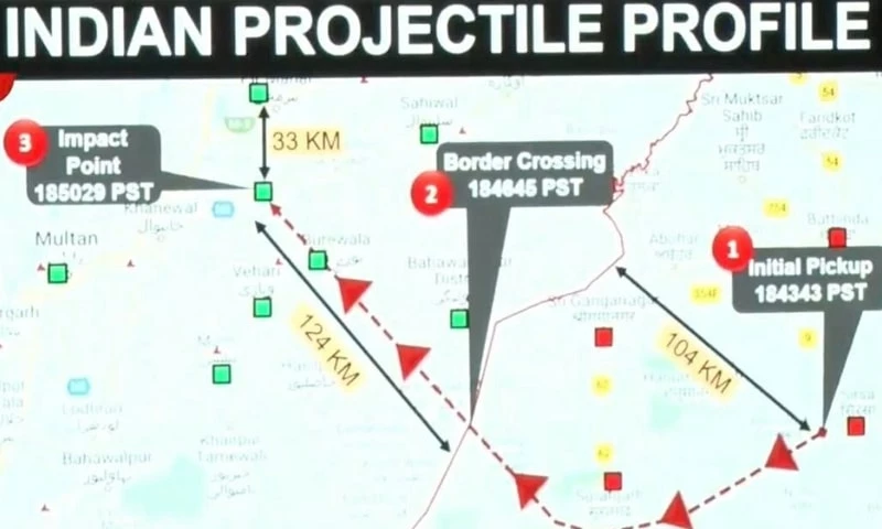 "On March 9, at 6:43pm, a high-speed flying object was picked up inside the Indian territory by Air Defence Operations Centre of the Pakistan Air Force (PAF)," he told media persons in Islamabad, adding the object suddenly manoeuvred towards Pakistani territory from its initial course and violated Pakistan's air space, ultimately falling near Mian Channu at 6:50pm.