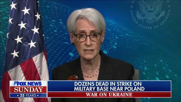 Sherman's comments came as Russia said on Sunday it had attacked the Yavoriv training facility in western Ukraine, adding the strike had killed "up to 180 foreign mercenaries" and destroyed a large number of weapons supplied by outside nations.