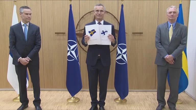 "The applications you have made today are a historic step. Nato allies will now consider the next steps on the path to Nato. The security interests of all allies have to be taken into account, and we are determined to work through all issues and reach a rapid conclusion," Nato Secretary-General Jens Stoltenberg said at a short ceremony in which the Swedish and Finnish ambassadors to the alliance handed over their application letters, each in a white folder embossed with their national flag.