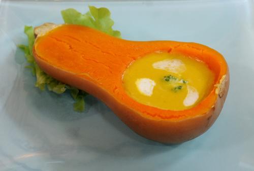 A Doi Kham eggplant salad involved grilled scallops with a hint of truffle oil and herbal spiciness. Pumpkin soup with black-truffle oil came in the tender-cooked pumpkin.