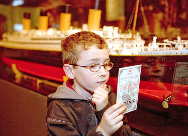 Your own journey begins with a great photo opportunity: Climb onto a mock-up of the ship’s bow by the entrance and have your picture taken, hanging over the railing just like in “Titanic” the movie. Go right ahead and proclaim yourself king of the world.
