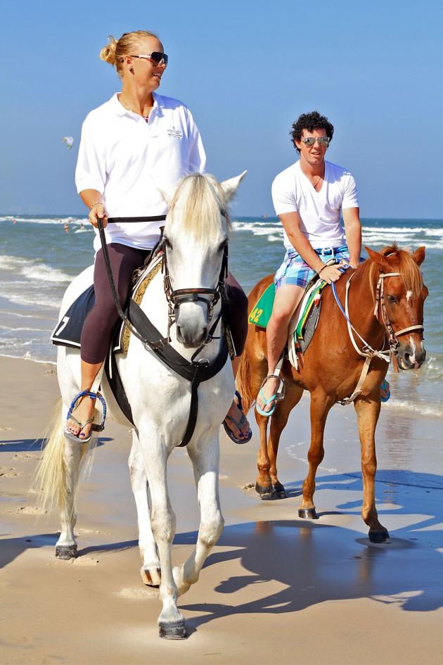 Wozniack, who is accompanied by her golfer boyfriend Rory McIlroy, has been to the Kingdom so many times she calls herself a “half-Thai”. The couple enjoyed horse riding along the beach yesterday afternoon.