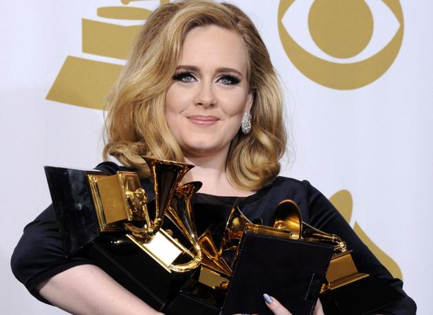 Adele, 23, won for record of the year, album of the year, best song and best solo pop performance after topping 21 charts worldwide with popular anthems like Rolling in the Deep and Someone Like You.