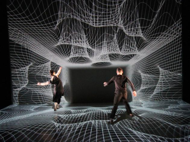 They offered viewers an “invitation to travel, to dream” and set sail aboard an overturned table on a journey from the natural environment into the fantastical world of fast-changing digital landscapes. They ran along computer grids, slid around swelling ridges, trekked through rough terrain, hurtled over vortexes, and dodged craters as the floor disintegrated into three dimensions.