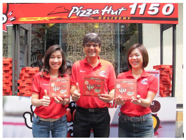 Mr.Milind Pant (middle) Managing Director, Mrs. Waewkanee Assoratgoon (right) CMO and Mrs. Nongnuch Buranasetkul (left) Pizza Hut’s business Director, Yum Restaurants International (Thailand) joined the launch of Pizza Hut’s latest initiative a 4-piece pizza ‘Num Hit WOW’ which is the revolution of the pizza QSR market due to its affordable price at