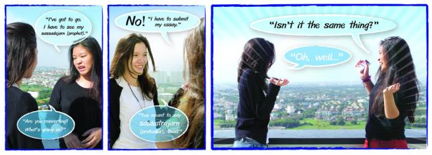 “Thai workbooks can be really boring, so teenagers should listen to Thai music and pick up the lyrics, and read Thai comic books,” Nana says. “They should use Thai on the social networks like Instagram or even Facebook.”