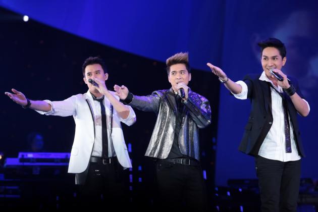 Eakachai “Eakky” Aursangkomset was next up on stage, singing “Kon Tee Ter Mai Yom Rub”, a hit from the 1990s. To the delight of his fans, he was joined by his former UHT bandmates Phuthanate “Captain” Hongmanop and Wuttisit “Tem” Suebsuwan for “Young Yin Dee Krub Pheun”.