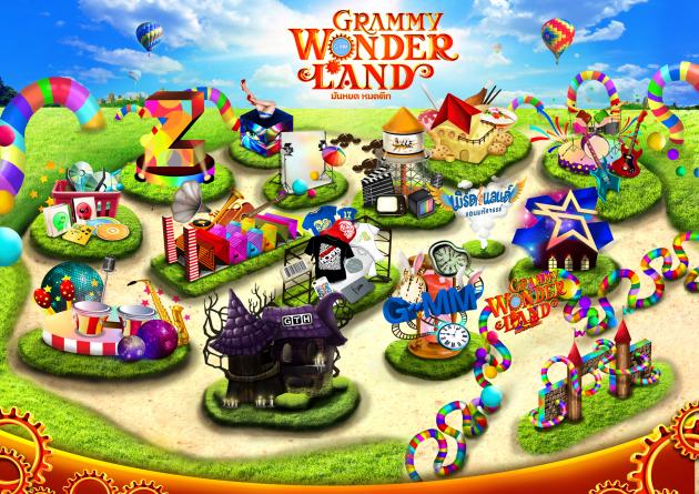 Designed as an entertainment expo, Grammy Wonderland features 11 pavilions: The Unscene Grammy, The History, Exact &Scenario, GTH Movie Experience, Music Factory, Bang Street Fair (GM TV), Z Town (GMMZ), GMM Publishing, Peep Show by Image, Outlet (CD Warehouse) and Imagine (souvenir shop) in addition to A-Time to Eat and Byrdland.