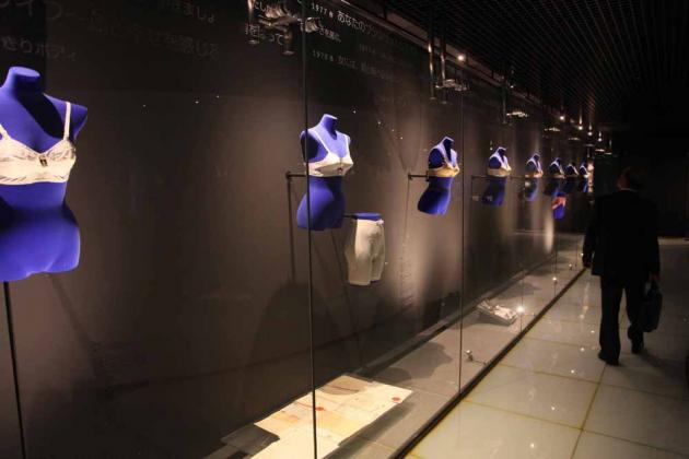 The complexity of the female body is clearly shown in a glass case displaying the 40 parts required to form a single bra. These parts account for approximately 25 different components and materials. Each brassiere goes through roughly 20 processes with more than 6,000 stitches, which take a single team of 20 personnel about 25 minutes to complete.