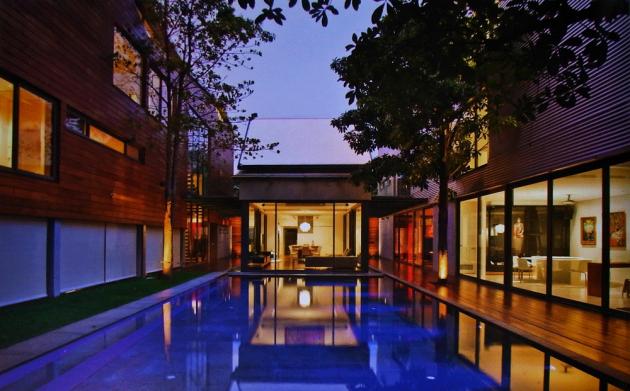 The designs aim to adhere to the principles of Geoffrey Bawa: tropical houses built in close proximity to the natural world. No substantial trees on the sites are destroyed and there’s a minimal use of glass.