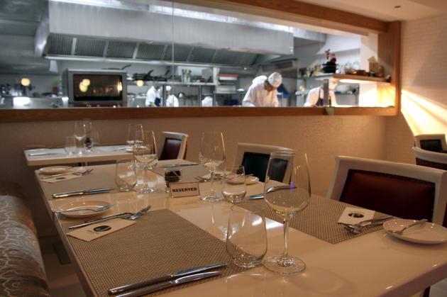 The bistro, which seats 50, is decorated simply with white and maroon leather chairs and has a lively open kitchen where diners can view the chefs at work through a large window. A small bar sits in a nook of the dining room with spirits, wines and standard cocktails. There is also a gourmet deli section selling some of the ingredients the chefs use in the kitchen like fresh oysters, chilled lamb rack and beef tenderloin as well as frozen foie gras and duck breast, pasta, vinegar, balsamic and truffle oil. Different wines are also on offer.