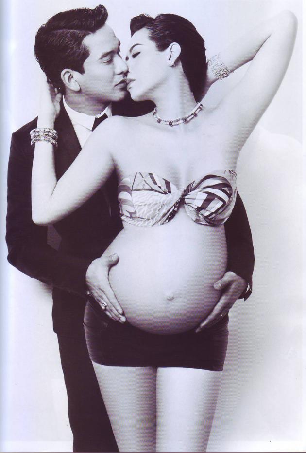 Thai magazines, too, hit up every widening star, and the more skin the better. Rybena “Nana” Intachai budded for the Thai edition of Marie Claire earlier this year. Now comes actor Nattawut “Por” Skidjai’s wife Pornthip, seven months pregnant and baring a lot for Praew.