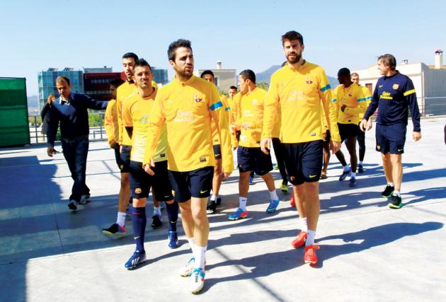 Half an hour later the whole Barca squad, except the ailing Messi, appeared in their yellow training outfits and approached us for a photo session under the eye of the ThaiBev men. With them was towering Frenchman Eric Abidal, whose return at Mallorca after a year out in which he had a liver transplant, stole the headlines in several Catalan tabloids.