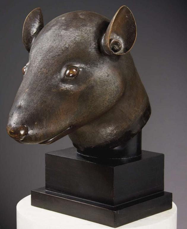 The bronze heads were made for the zodiac fountain of Emperor Qianlong’s Old Summer Palace, and looted when the palace was burned by invading French and British forces in 1860. Heads of the 12 animals of the Chinese zodiac mounted on human bodies served as waterspouts, each head spouting water for a designated two-hour period.