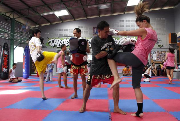 Bangkok's fitness brigade has taken muay thai to heart - hear the happy grunts?