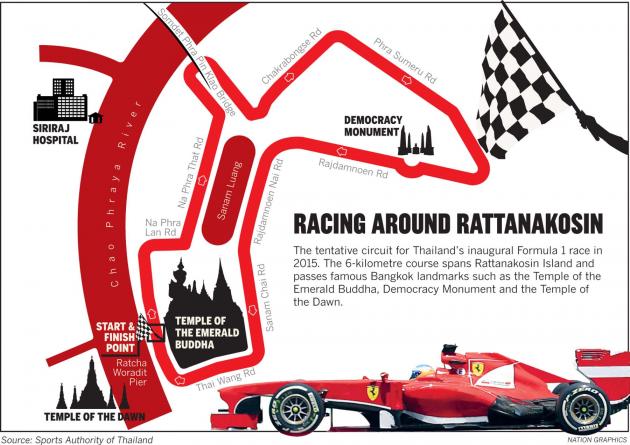 Last week, BMA representatives from the Culture, Sports and Tourism Department, Traffic and Transportation Department and Department of City Planning were informed about the primary idea to host the F1 by the preparation committee. According to sources, the committee was asked to reconsider the race routes due to BMA regulations, orders and other laws, which restrict the use and the organisation of sporting events within and around Rattanakosin Island, which is a conservation area where motor racing is prohibited.
