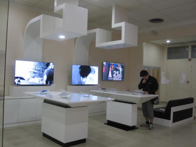 Stunning videos by Kim Kira are screened in the Multimedia Lounge, where visitors marvel at South Korean technology.